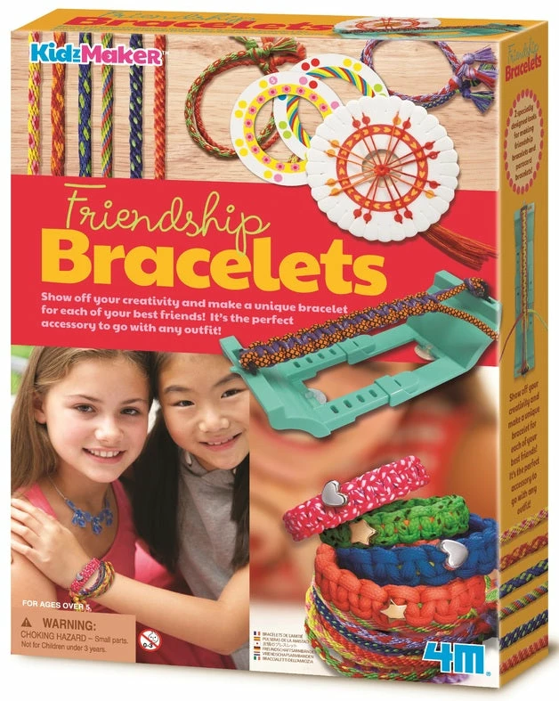 Children can show off their creativity and make unique bracelets for each of their best friends with the 4M KidzMaker Friendship Bracelets craft set.