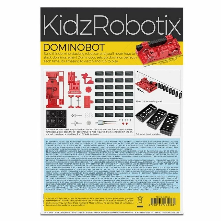 4M KidzRobotix’s Dominobot is the most advanced domino-stacking robot car in the world. It sets up and stacks perfect rows of dominoes every time, with no human assistance whatsoever.