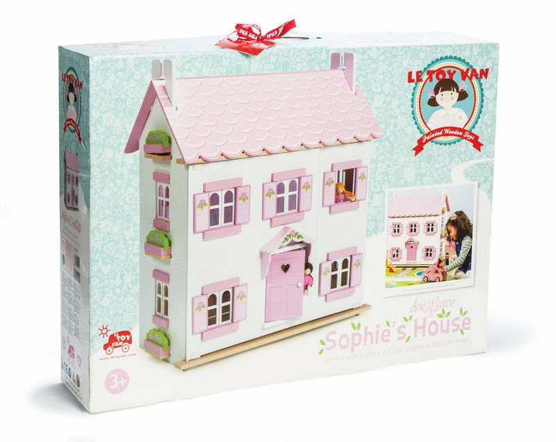 This award-winning beautifully painted and decorated 3 storey doll’s house from Le Toy Van is perfect for your little girl. It features a glittery scalloped roof, a front porch, floral motif, a staircase, loft ladder and opening shutters and windows.