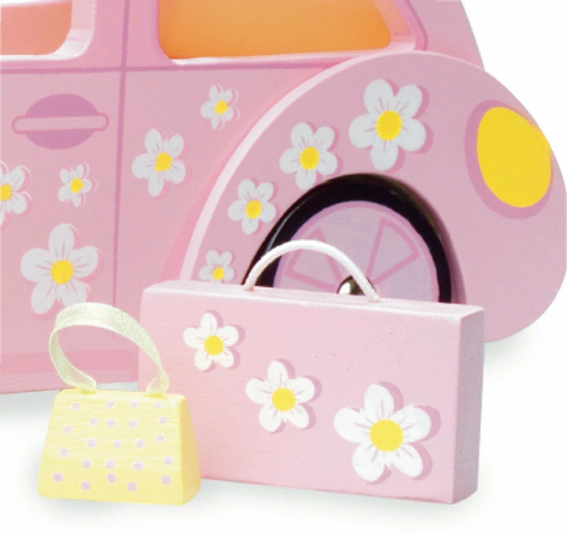 Sophie’s Car is a pretty pink wooden car scaled perfectly for LE TOY VAN dolls. Includes stylish matching luggage!